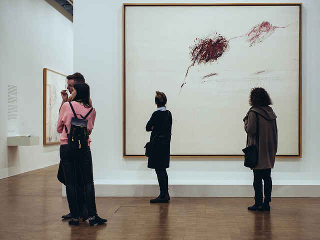 Visiteurs de l’exposition Cy Twombly au centre Pompidou, devant le tableau « Achilles Mourning the Death of Patroclus ».
