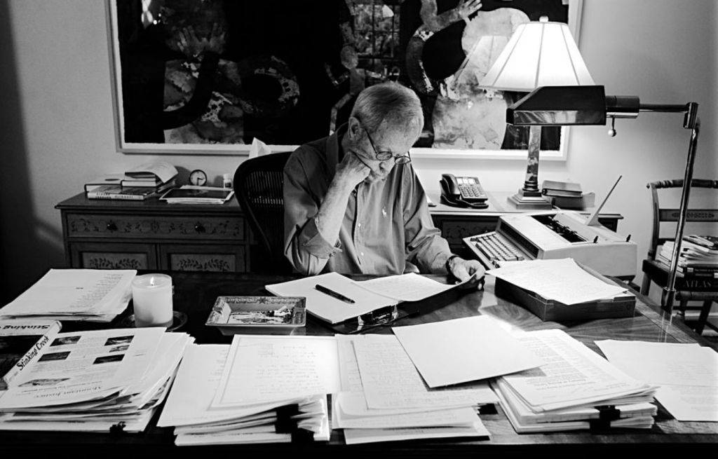 Photo: Carlos Osorio Associated Press. Elmore Leonard travaille un manuscrit dans sa maison de Bloomfield Hills, en septembre 2010.