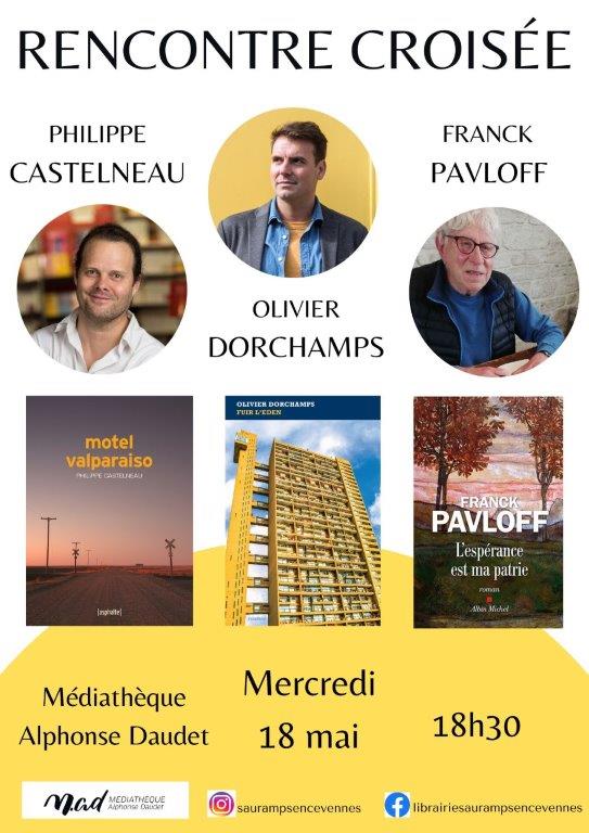 Rendez-vous le 18 mai prochain, à 18h à la médiathèque Alphonse Daudet d’Alès, pour une rencontre croisée avec Olivier Dorchamps et Franck Pavloff, qui s’annonce très riche.