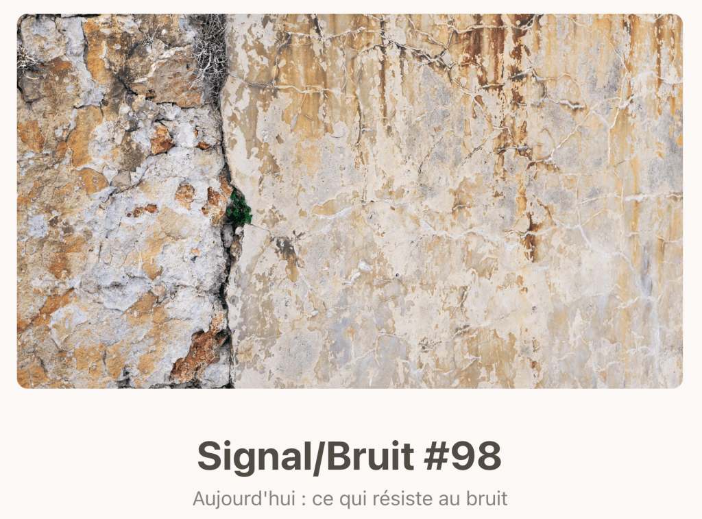 Signal/Bruit #98 est disponible en ligne. Abonnez-vous pour recevoir chaque mois ma newsletter dans votre boite mail (c’est gratuit !).